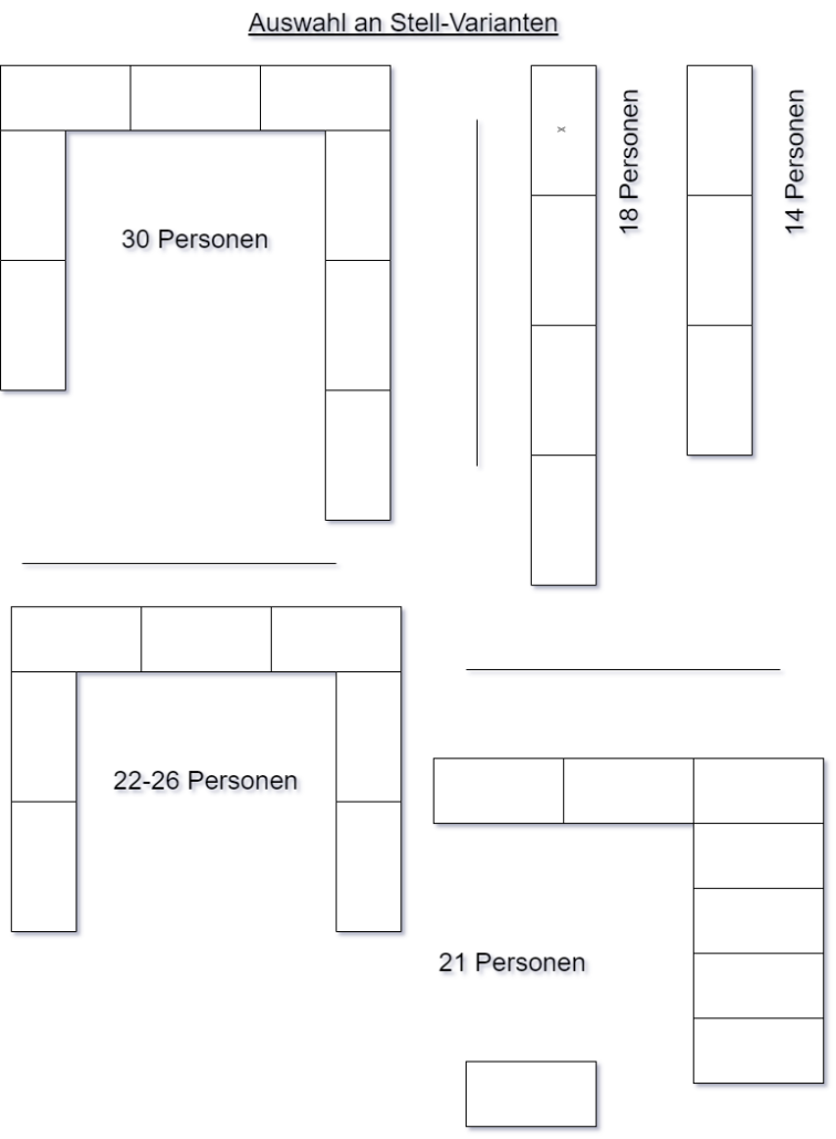Fragen Sie nach unseren Zusatzleistungen: Reinigungsservice; Getränkeservice; weiße Tischdecken; einheitliche Gastro-Gläser; Grill mit Holzkohle oder Feuerschale mit Holz; Spieleideen mit kurzweiligen, gruppentauglichen Spielen (für drinnen); Leitergolf (für draußen);